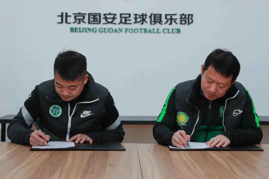 2021年11月10日,北京国安足球俱乐部与7家青训培训机构合作签约仪式在国安东城训练基地举行。俱乐部副总经理张智君、青训发展部负责人路鸣与7家培训机构负责人完成签约,共同助力北京青少年足球普及和发展。
